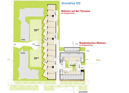 Die Studie wurde als gebäudestrukturelle Untersuchung durchgeführt, mit dem Ziel, verschiedene Bebauungsmöglichkeiten aufzuzeigen und einen Wohnstandort mit eigener Identität zu entwickeln. Die Konzepte setzen unterschiedliche Schwerpunkte in Wohnform und Wohnungsmix, öffentlichem Raum und Platzbildung. So entstehen in den Konzepten unterschiedliche Qualitäten. Durch den ganzheitlichen Ansatz, der auch die Außenanlage mit einschließt, kann so ein neues urbanes Quartier mit eigenständigem Charakter geschaffen werden.