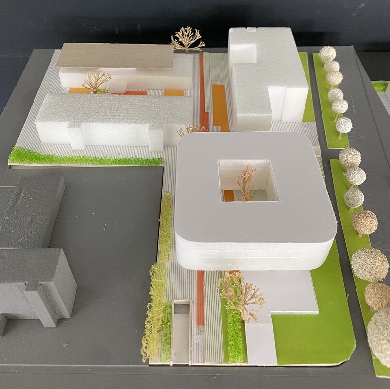 Der Schwerpunkt der Studie lag darauf, ein Quartier zwischen der Kleyerstraße und dem Jobcentre zu schaffen, das durch eine verbindende Außenanlage zusammengeführt wird. Das neue Bürogebäude soll anstelle des 'Haus der Wellpappen-Industrie' entstehen und als markanter Auftakt von der Kleyerstraße aus dienen. Von vier Konzepten wurden zwei weiter vertieft. Das Konzept 3, mit dem Titel 'Kopfbau als Auftakt', das eine Kombination aus Büro- und Labornutzung vorsieht, wurde als bevorzugte Variante weiter ausgearbeitet.