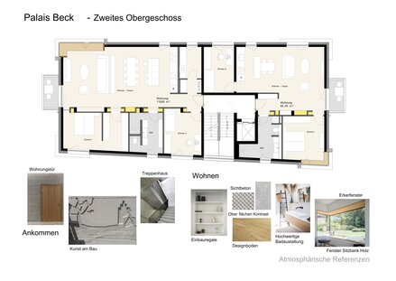 durch einen zentralen Hauseingang von der Beckstraße aus und ein Treppenhaus mit Aufzug an der rückwertigen Ostfassade erschlossen.