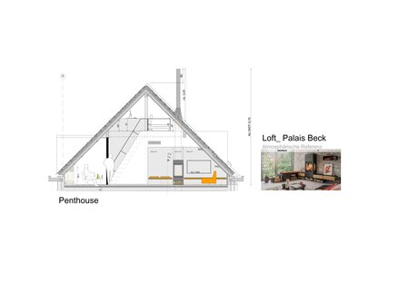 Am Fuße der Mathildenhöhe wird ein dreigeschossiges Wohngebäude mit ausgebautem Dachgeschoss und offener Garage errichtet. Das Gebäude wird